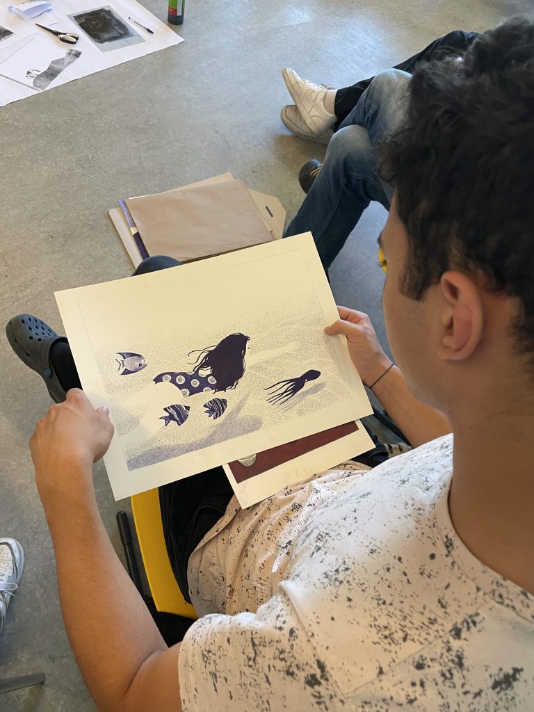 beeindruckend war seine Demonstration der Monotypie für seine Illustrationen sowie seine Vorführung