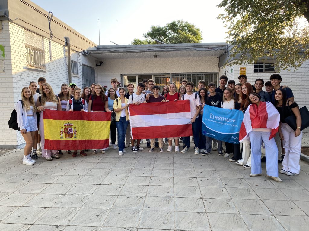 In der Nacht vom 16. auf den 17. September traten wir Schüler*innen der 8AB unsere Reise nach Sevilla an. Um 4:30 Uhr fuhren wir mit dem Bus zum Wiener Flughafen und danach flogen wir weiter nach Sevilla. Von dort aus nahmen wir den Bus, um zu unserer spanischen Partnerschule, der IES Alguadaíra in Alcalá de Guadaíra, zu gelangen. Wir wurden sehr herzlich von unseren Gastgeschwistern empfangen. Da sie uns bereits im April in Österreich besucht hatten, kannten wir uns schon und die Freude war umso größer. Danach machte sich auch schon jeder zu seiner Gastfamilie auf. Den Rest des Tages hatten wir frei und die Spanier*innen nahmen uns mit nach Sevilla in ein Einkaufszentrum.