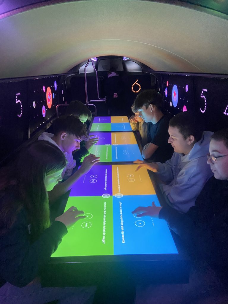 Diese Stationen sind interaktive Stationen zu Angebot – Nachfrage, Zinswesen, Berufe und Verdienst, usw.