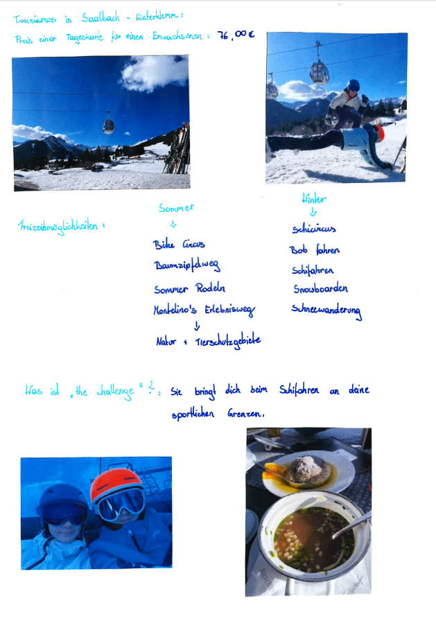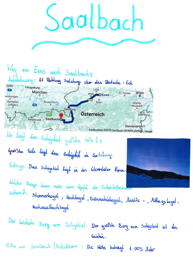 Vom 19. bis zum 24. Jänner verbrachten die dritten Klassen des b{r]g Enns auf der Skiwoche in Saalbach Hinterglemm. Die Fahrt mit dem Bus dauerte um die 3,5 Stunden. In Saalbach angekommen, mussten wir 30 Minuten bis zu unserem Quartier den Berg hinaufgehen. Nach der Ankunft luden wir das Gepäck aus dem Anhänger aus. Dann durften wir endlich aufs Zimmer. Nach dem Abendessen wurden wir in die Gruppen eingeteilt.