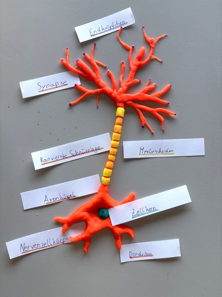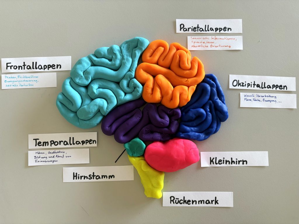 Im Wahlpflichtgegenstand Biologie in der 6. Klasse beschäftigten wir uns näher mit dem menschlichen Gehirn. Beim Sezieren eines Schweinehirns lernten wir viel über den Aufbau und anschließend versuchten wir, mit Knetmasse die verschiedenen Strukturen und Bereiche des Gehirns zu modellieren.