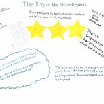 Each student took an A4 or A3 sized paper and designed a kind of summary about the historical fiction novel by John Boyne. It was up to the students how many sections, which topics and how much they want to write or draw. Creativity and self-organization is needed to complete such a task.