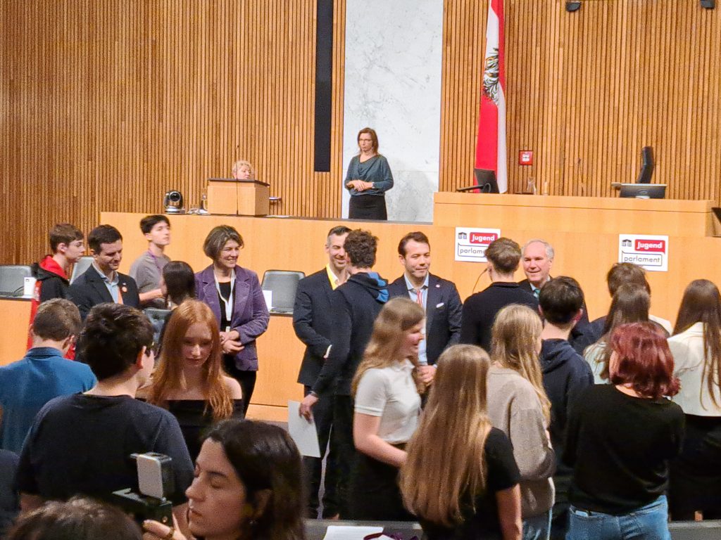 Wir möchten uns herzlichst bei allen Mitwirkenden bedanken. Die Teilnahme am Jugendparlament 2024 war eine einmalige Chance, die uns noch lange in Erinnerung bleiben wird. Und vielleicht werden ein paar Schüler*innen wirklich einmal Abgeordnete im Nationalrat.