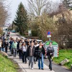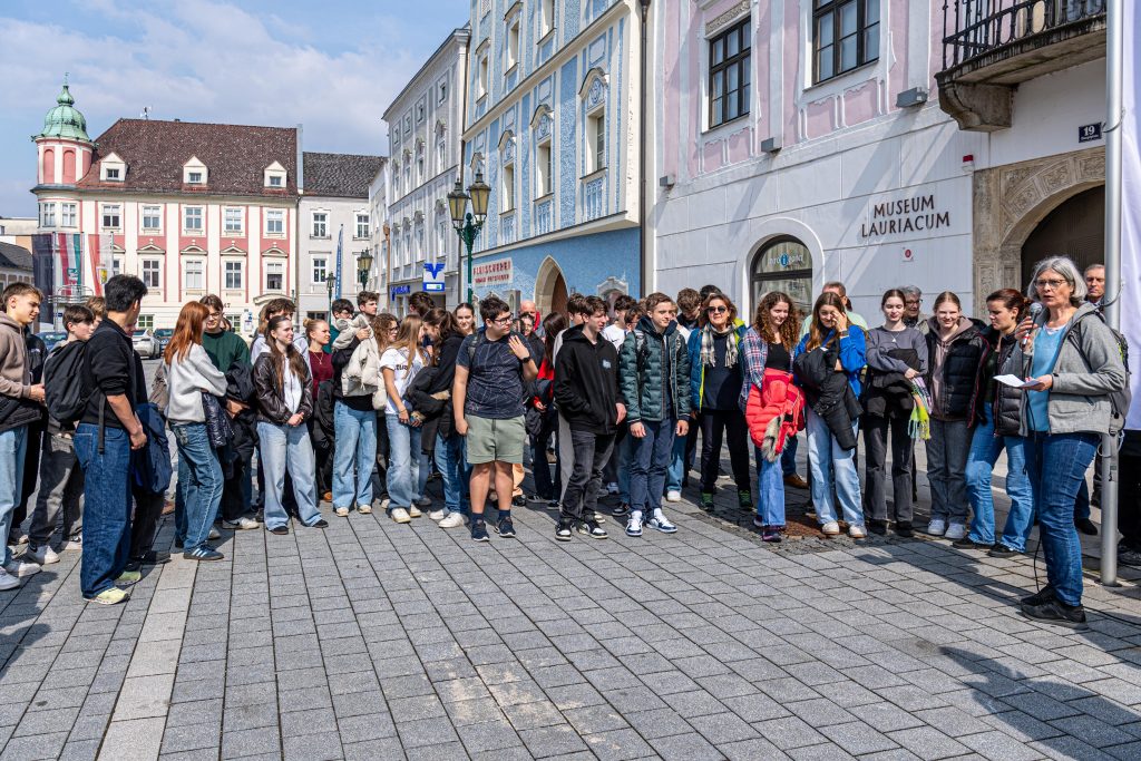 Am Nachmittag hatten die Schüler*innen der 5. Klassen die Möglichkeit mit Jack Hersch an diesem, vom Mauthausen Komitee Enns organisierten Gedenkmarsch, teilzunehmen. Gemeinsam besuchten sie Orte, die im Leben von David Hersch eine bedeutende Rolle einnahmen, darunter Orte der Verfolgung entlang der sogenannten Todesmärsche, als auch Orte der Solidarität, wie das Haus der Familie Friedmann, in dem David Hersch versteckt wurde.