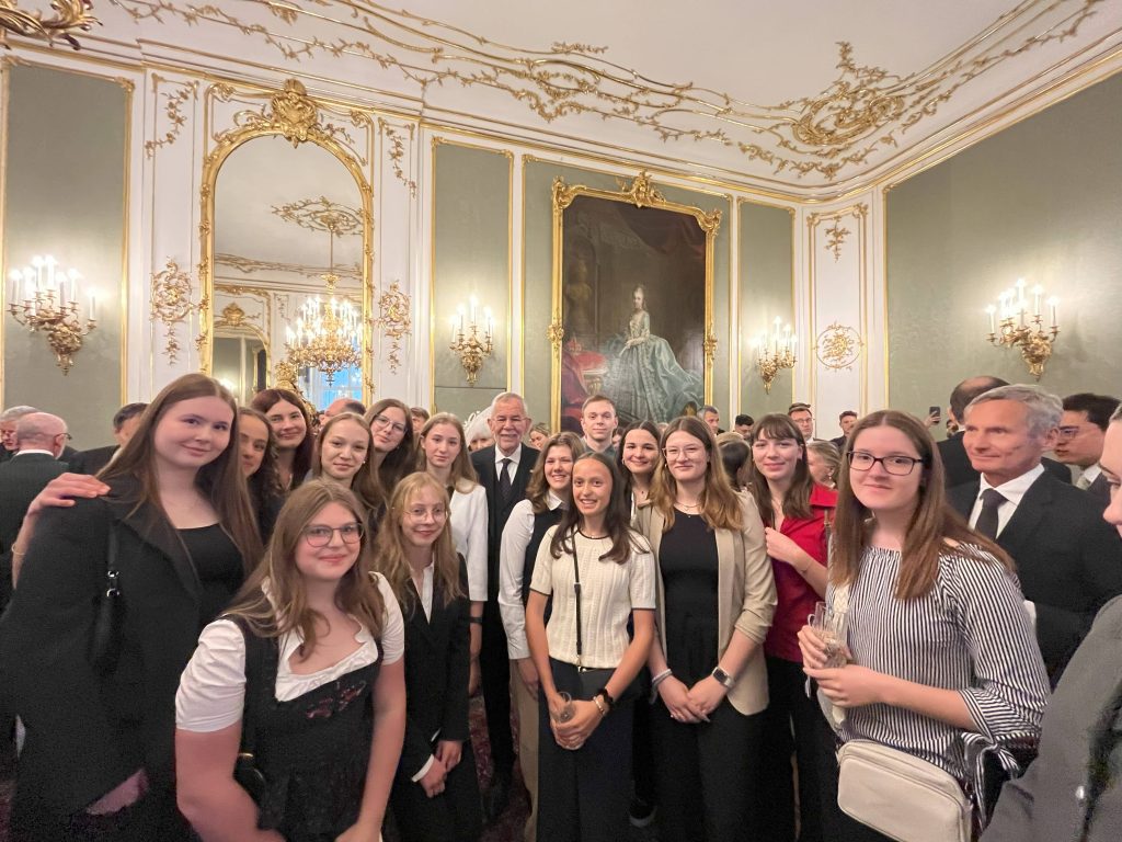 Im Anschluss an den Festakt fand ein feierlicher Empfang statt. Neben zahlreichen köstlichen Häppchen und liebevoll zubereiteten Speisen nutzten wir die Gelegenheit für spannende Gespräche mit verschiedensten Politiker*innen. Dabei konnten wir Fragen stellen und wertvolle Einblicke in die politische Arbeit gewinnen. Zudem entstanden viele Fotos, um diesen besonderen Tag festzuhalten.