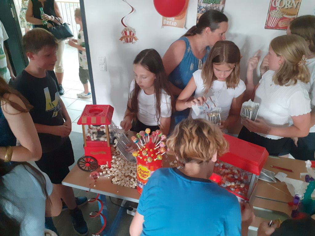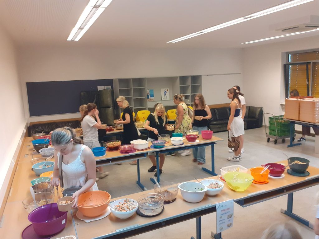 Mit einem riesigen Salatbuffet, Leberkäse, einem Eisstand und einem großzügigen Kuchenbuffet verwöhnte der Elternverein die zahlreichen Gäste mit leckeren Speisen. Die Cocktailbar der Peers, die Getränkebar des Elternvereins und die Bierschank der 7. Klassen sorgten dafür, dass die vielen Besucher*innen bestens versorgt waren und bis in die Dunkelheit hinein gemütlich zusammensitzen konnten.
