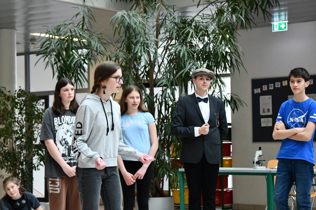 Seit diesem Schuljahr treffen sich rund 100 Schüler*innen jeden Freitag am Nachmittag, um am Projekt „Musical“ zu arbeiten. In kleineren Arbeitsgruppen, betreut von Prof. Gölles und Prof. Adelberger, werden von der Story bis zur Bühnengestaltung alles von den Engagierten der 1. bis 7. Klassen erarbeitet. Die Proben des Chors und des Orchesters sind ebenfalls bereits in vollem Gange, denn auch die musikalische Gestaltung wird übernommen. Das Stück handelt von einer Verlobungsfeier in einem Schloss und einem mysteriösen Kriminalfall. Nun ist es die Aufgabe der Protagonisten, den Fall aufzuklären.
