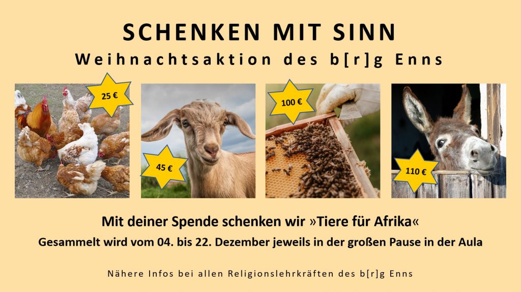 Das b[r]g Enns unterstützt auch heuer wieder die gleichnamige Aktion der Caritas und verschenkt Tiere an Familien in Afrika. Wir
