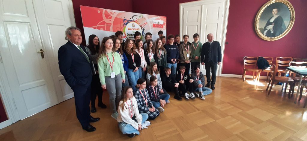 Die Klasse 4D besuchte am 16.03.2023 den Oberösterreichischen Landtag in Linz, wo sie sich im Rahmen der Demokratiewerkstatt einen ganzen Vormittag mit wichtigen Themen zur EU beschäftigte.