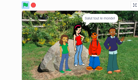 SchülerInnen der 4. Klassen haben im Rahmen des Sprachenateliers einen französischen Dialog mit dem Programm „Scratch“ umgesetzt. Zuerst haben sie