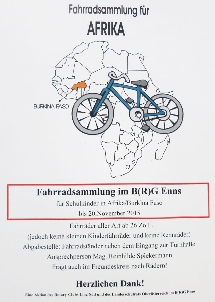 Der Rotary Club Linz-Süd startete mit dem Landesschulrat eine große Radsammelaktion für Afrika. An mehreren Schulen wurden Räder gesammelt für