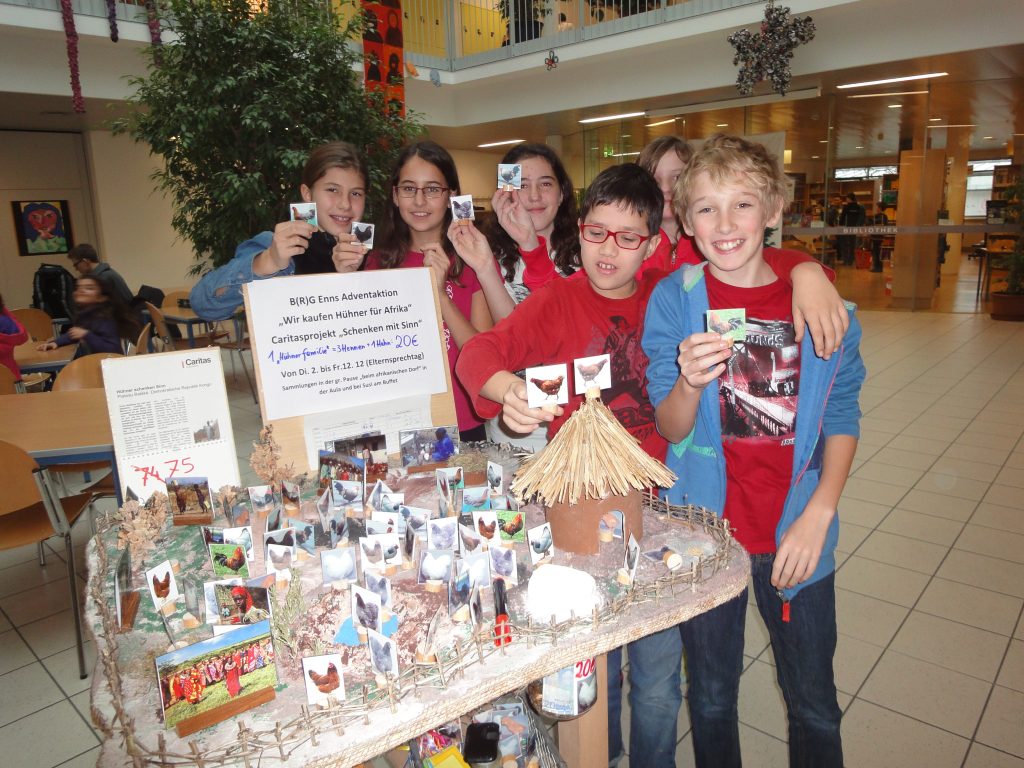 Adventaktion der Schule: 765 Euro: 153 Hühner (und Hähne) für den Kongo