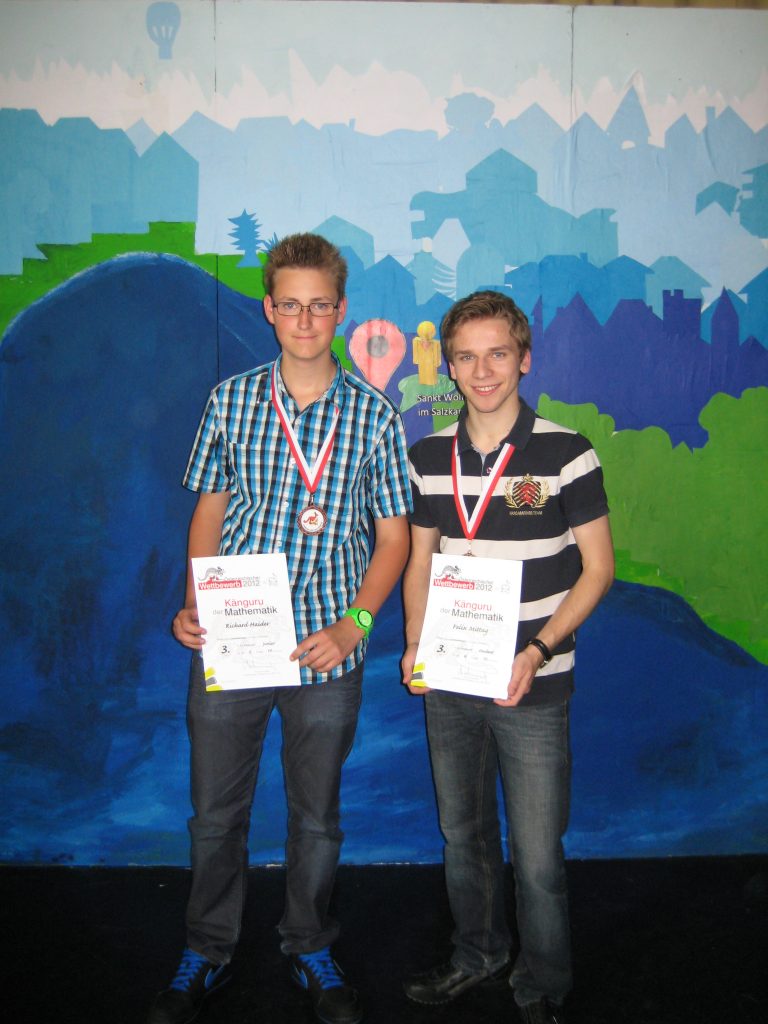 Für ihre ausgezeichneten Leistungen beim Wettbewerb "Känguru der Mathematik" wurden Richard Haider (6B) und Felix Mittag (8A) am 22. Mai